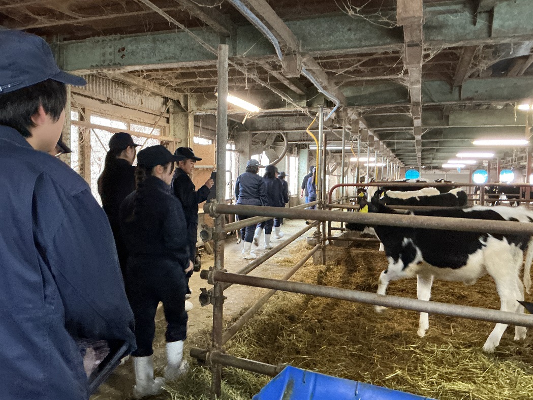 2年生と3年生の動物専攻の生徒たちで、酪農家見学に行きました。新潟県では酪農家が減少しており、今回の見学はとても貴重な経験となりました。また、本校は肉牛のみ飼育しているため、乳牛を間近で見ることができたことも、非常に有意義な体験でした。