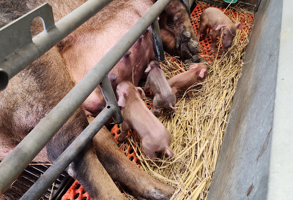 川船農場の繁殖豚舎では、3頭のメス豚と1頭のオス豚を飼育しています。そのうち2頭が妊娠しており、1月に出産予定だったメス豚がついに新しい命を迎えました。