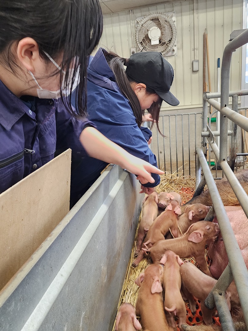 生徒たちは初めて豚の出産に立ち会い、生まれたばかりの子豚にそっと触れました。小さな体は温かく、命のぬくもりを感じる貴重な瞬間となりました。これからも、生徒たちは命の尊さを学びながら、農場での実習を続けていきます。